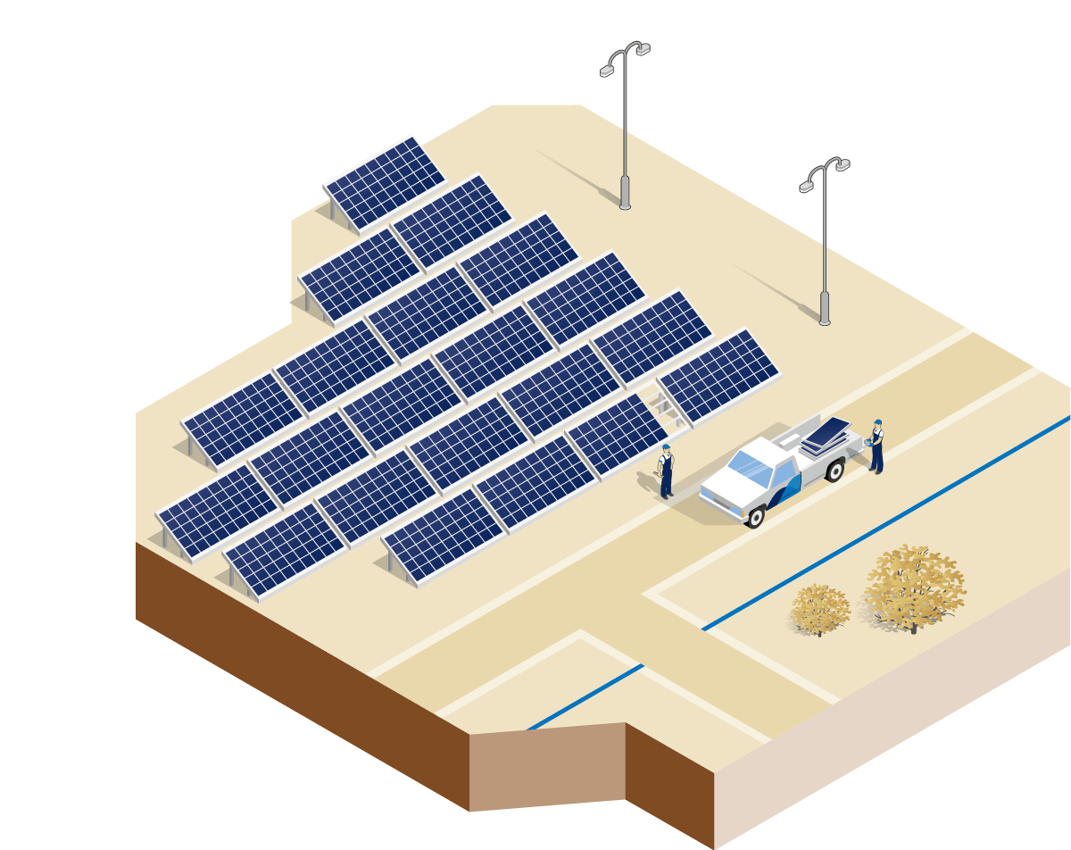 - Visual inspection (searching for mechanic damage; inspection of clamping, cables, connectors and junction boxes)